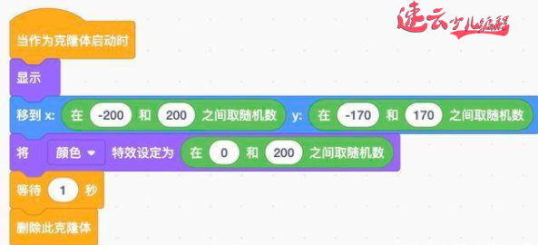 这个积木没有,这个积木就是当你克隆完的时候执行的,我们可以随机移动到某个地方