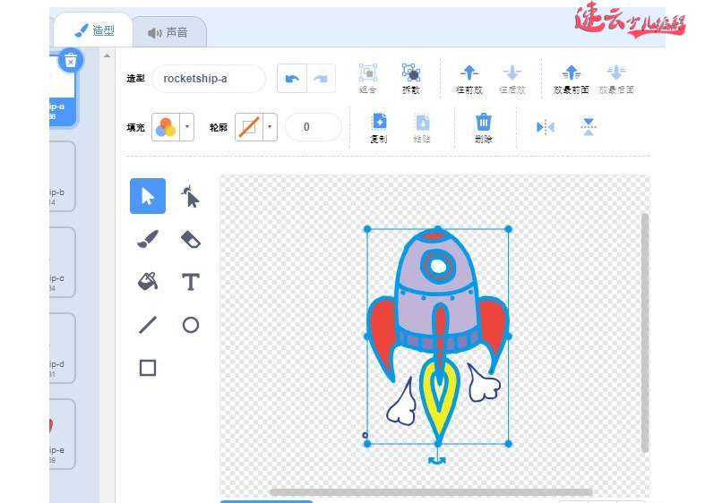 点击火箭的造型,选定火箭,