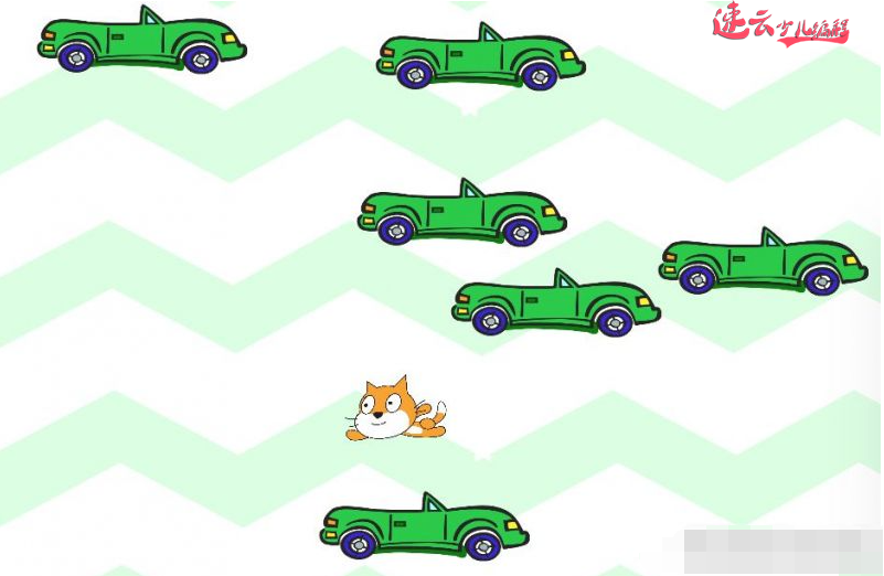 这样我们就完成了简单的交通安全的游戏,小朋友可通过按键控制小猫咪移动,以防止被汽车撞到。