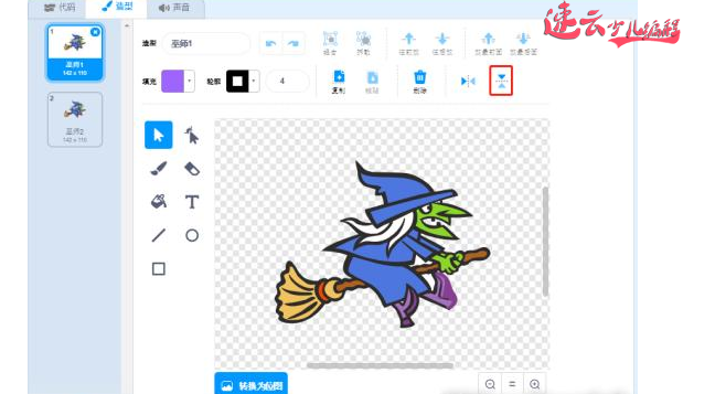点击绿旗,看看巫师头的朝向是否比以前顺眼多了?