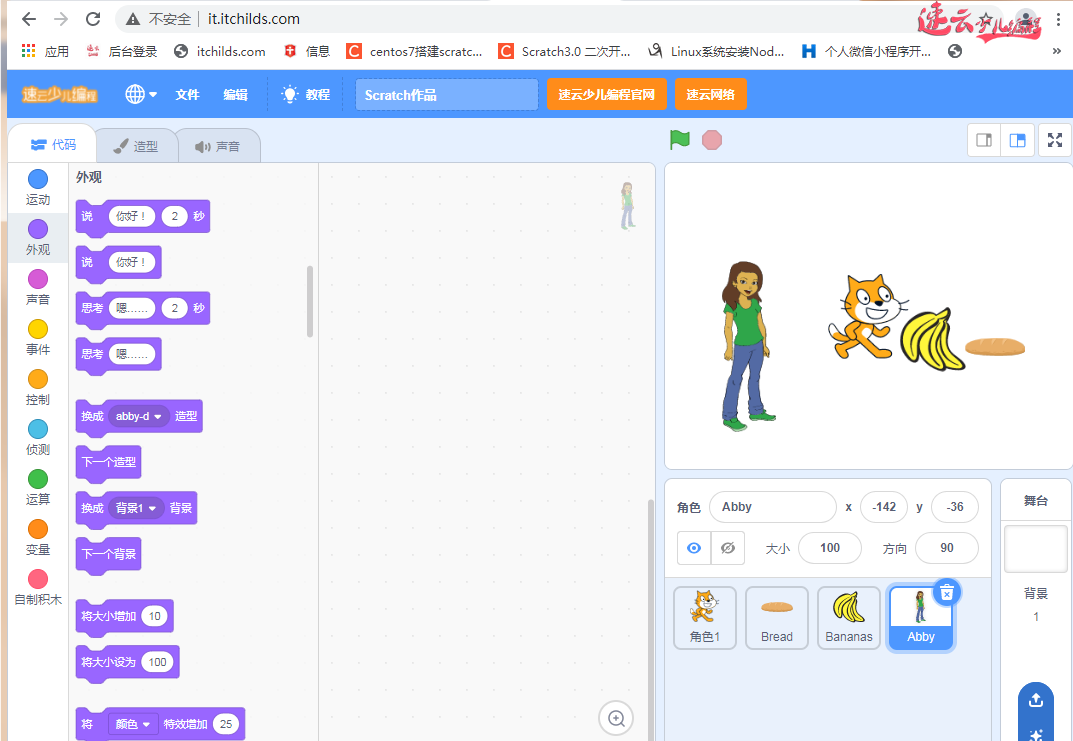其实四岁、五岁的孩子不认字怎么学习?只要孩子识别颜色就可以学习。通过颜色识别具体编程积木,比如:蓝色是运动、紫色是外观、黄色是事件等等,通过颜色识别文字,根据颜色先实现出程序做出卡通的效果,以激发孩子兴趣,使孩子产生兴趣后开始具体学习每个积木的作用,再学习积木上面的文字。如下图: